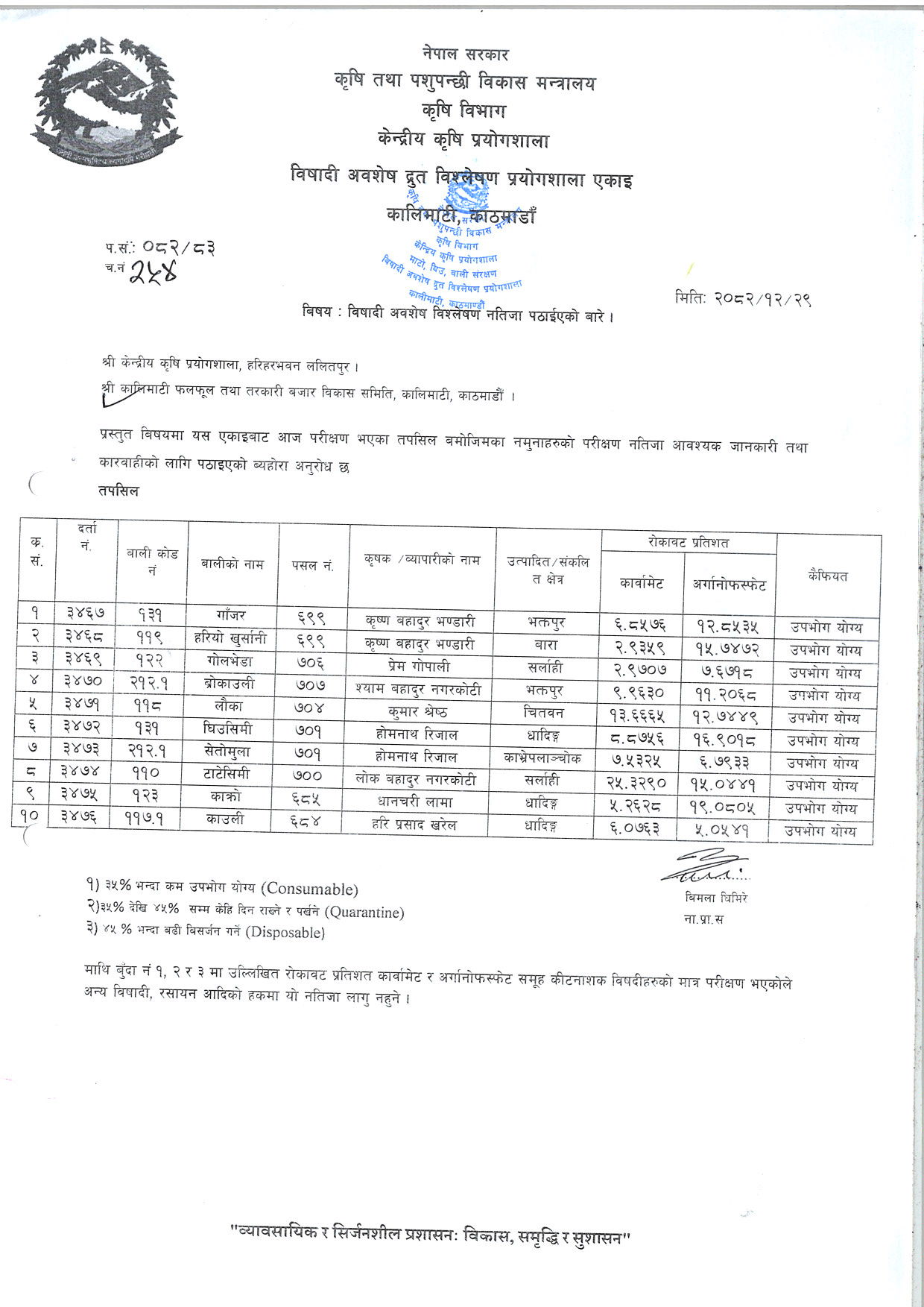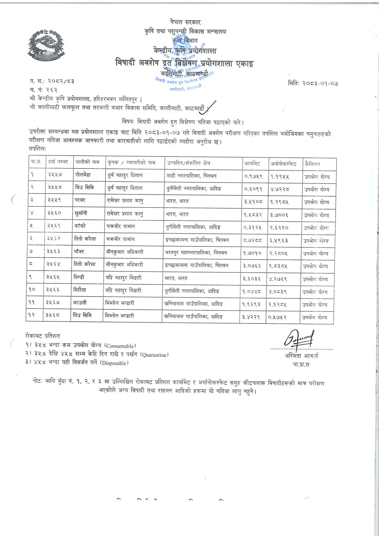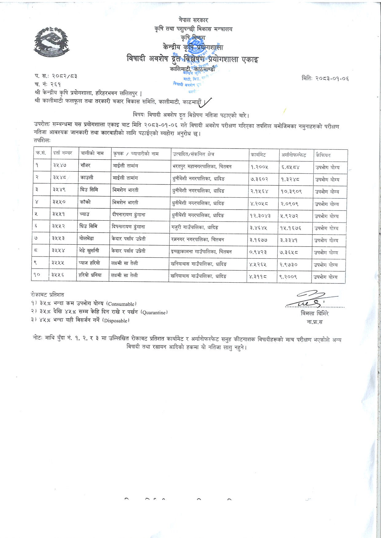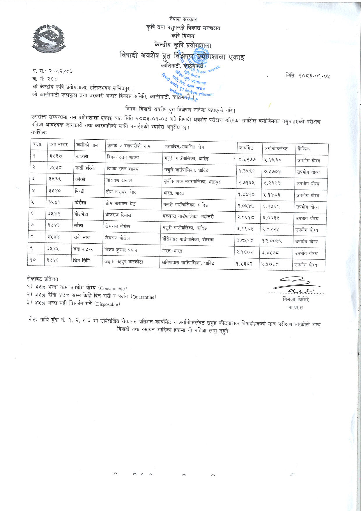 जाँच गर्न यहाँ क्लिक गर्नुहोस्: विषादी अवशेष रिपोर्ट