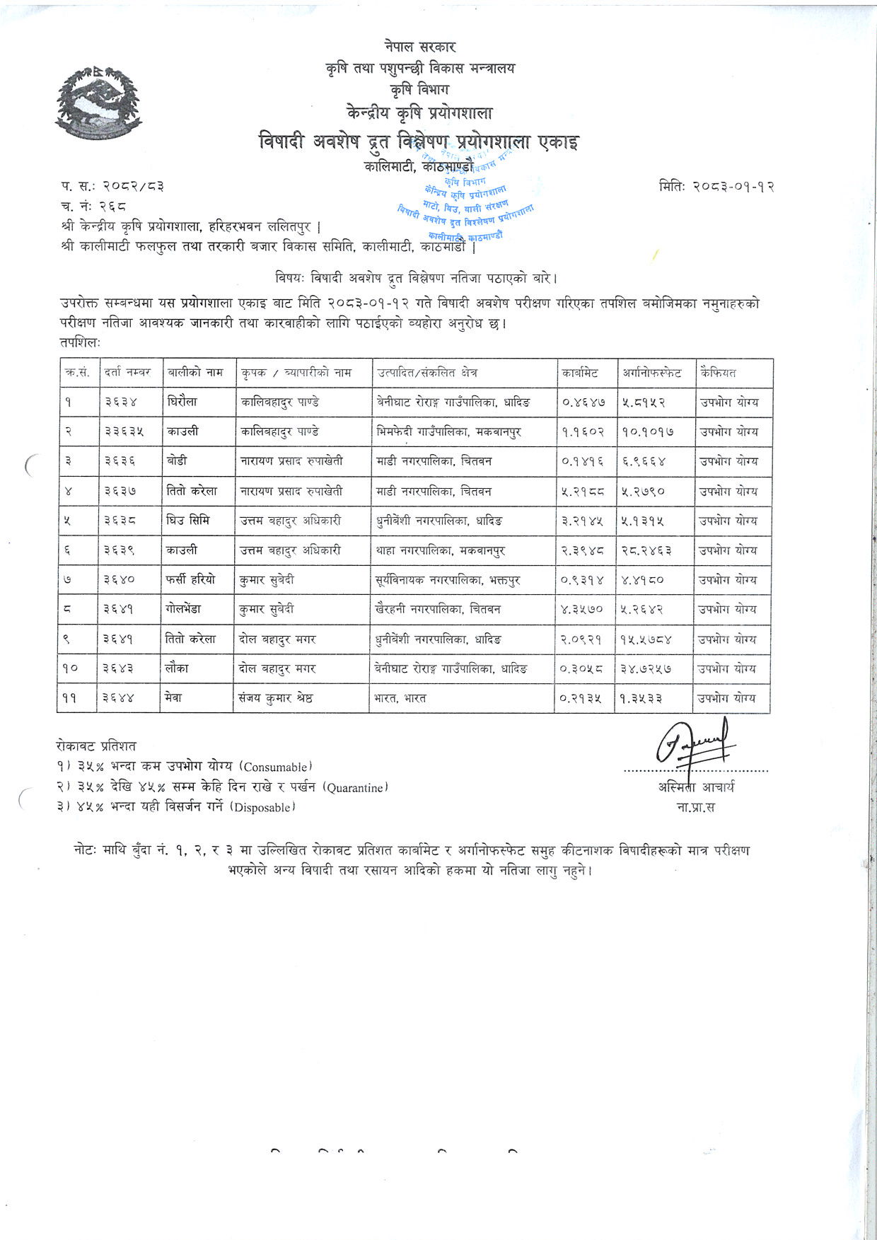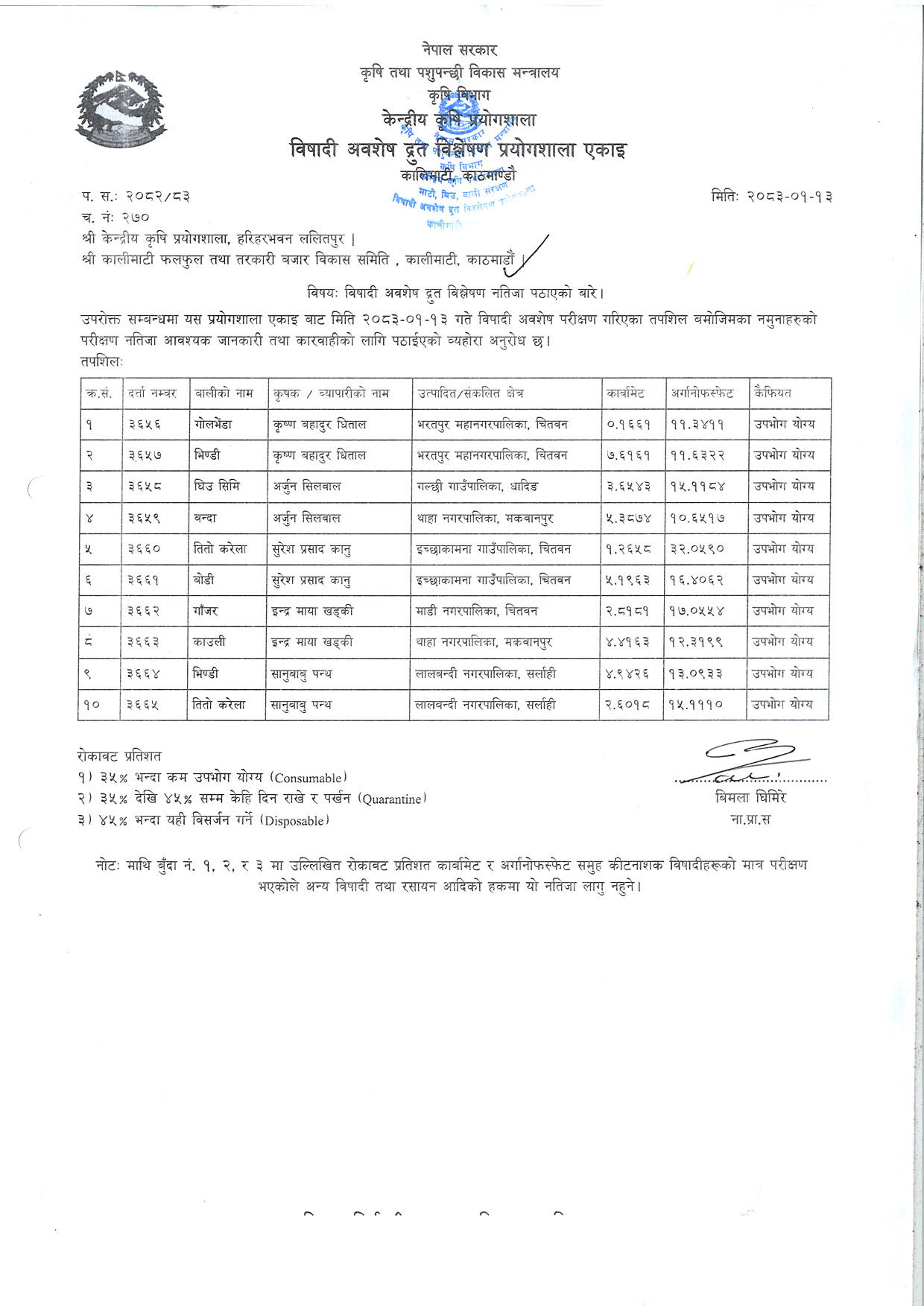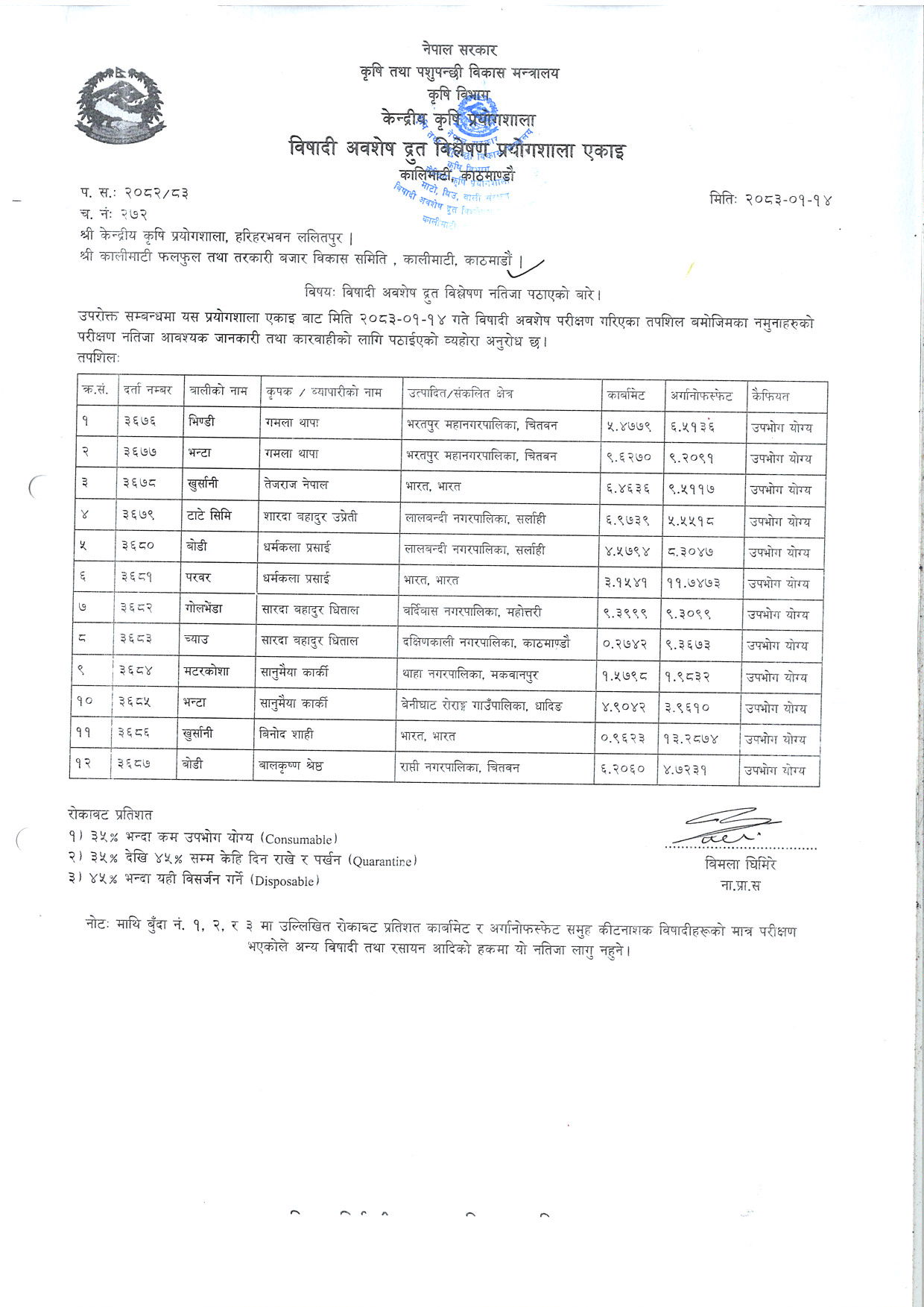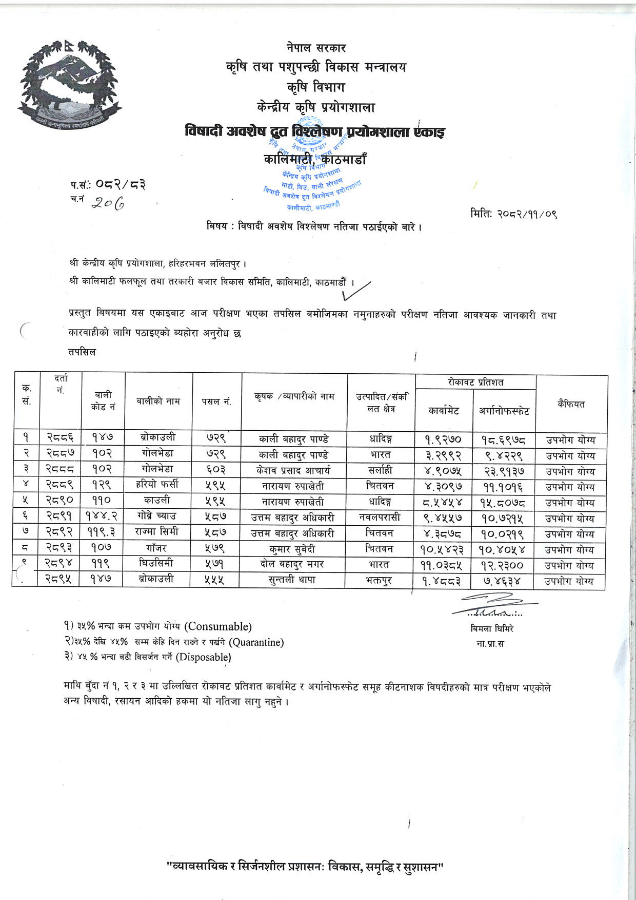 जाँच गर्न यहाँ क्लिक गर्नुहोस्: विषादी अवशेष रिपोर्ट