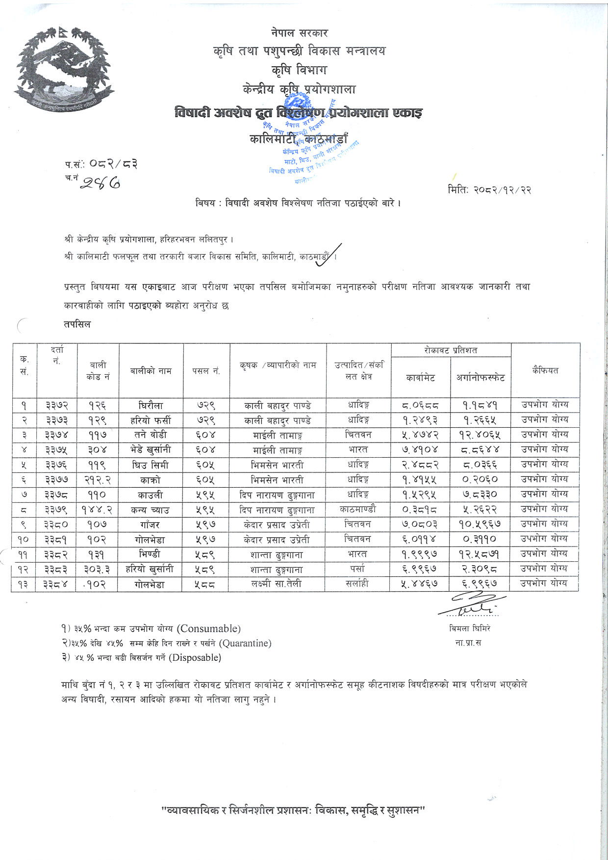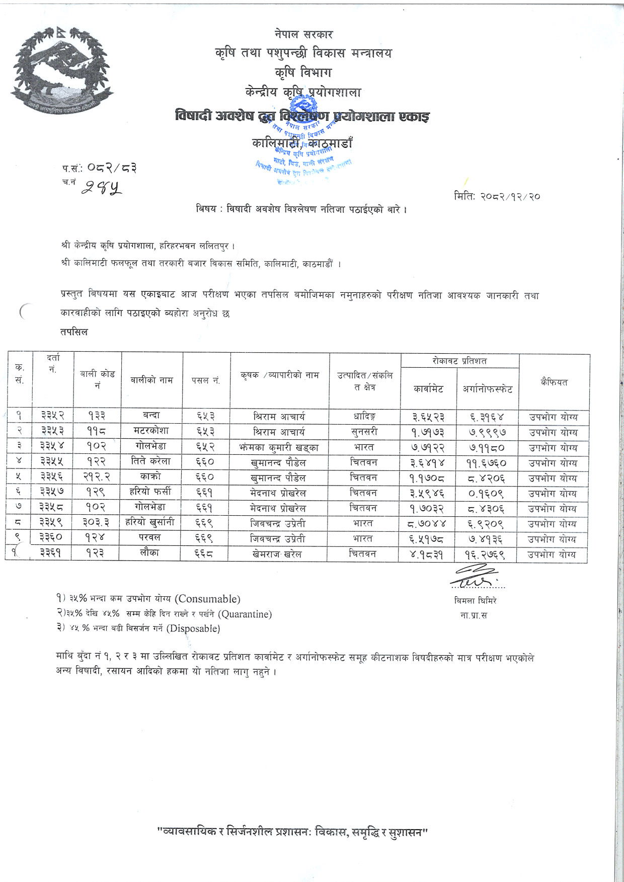 विषादी अवशेष द्रुत विश्लेषण नतिजा २०८२/१२/२९सूचना हेर्नुहोस्२०२६-०४-१२ डाउनलोड गर्नुहोस्