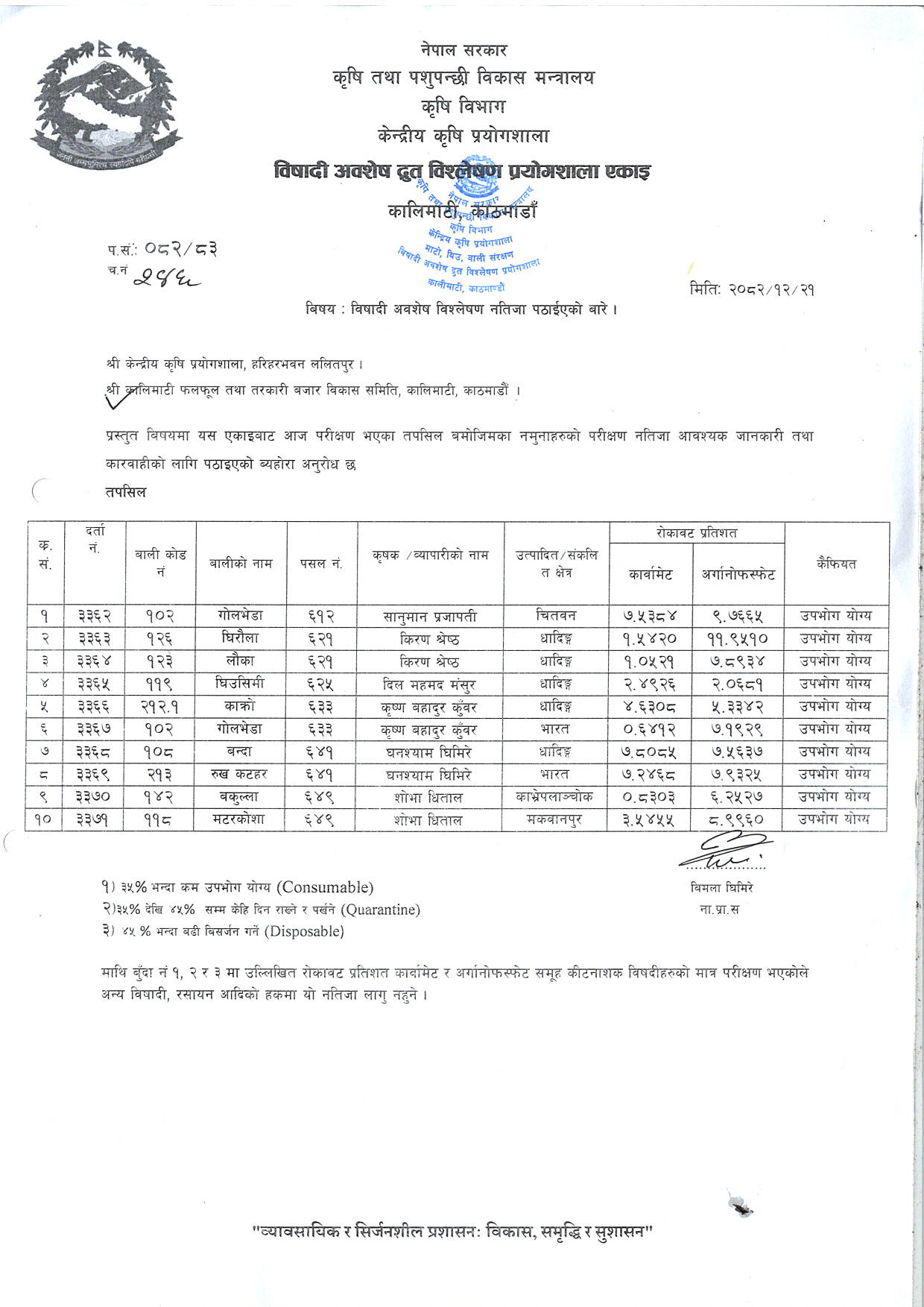 १०विषादी अवशेष द्रुत विश्लेषण नतिजा २०८२/१२/२५सूचना हेर्नुहोस्२०२६-०४-०८ डाउनलोड गर्नुहोस्