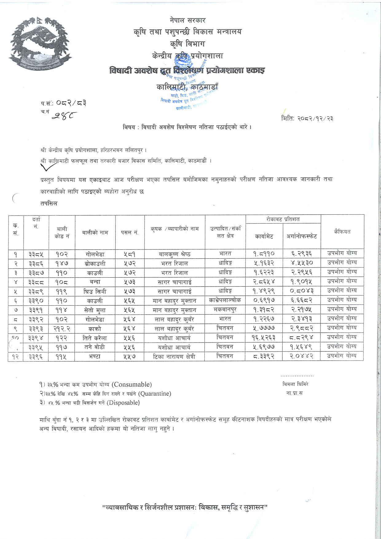 १२विषादी अवशेष द्रुत विश्लेषण नतिजा २०८२/१२/२३सूचना हेर्नुहोस्२०२६-०४-०६ डाउनलोड गर्नुहोस्