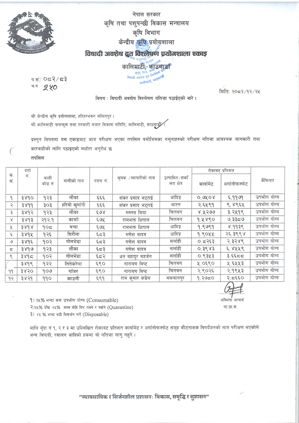 २५विषादी अवशेष द्रुत विश्लेषण नतिजा २०८२/१२/१०सूचना हेर्नुहोस्२०२६-०३-२४ डाउनलोड गर्नुहोस्