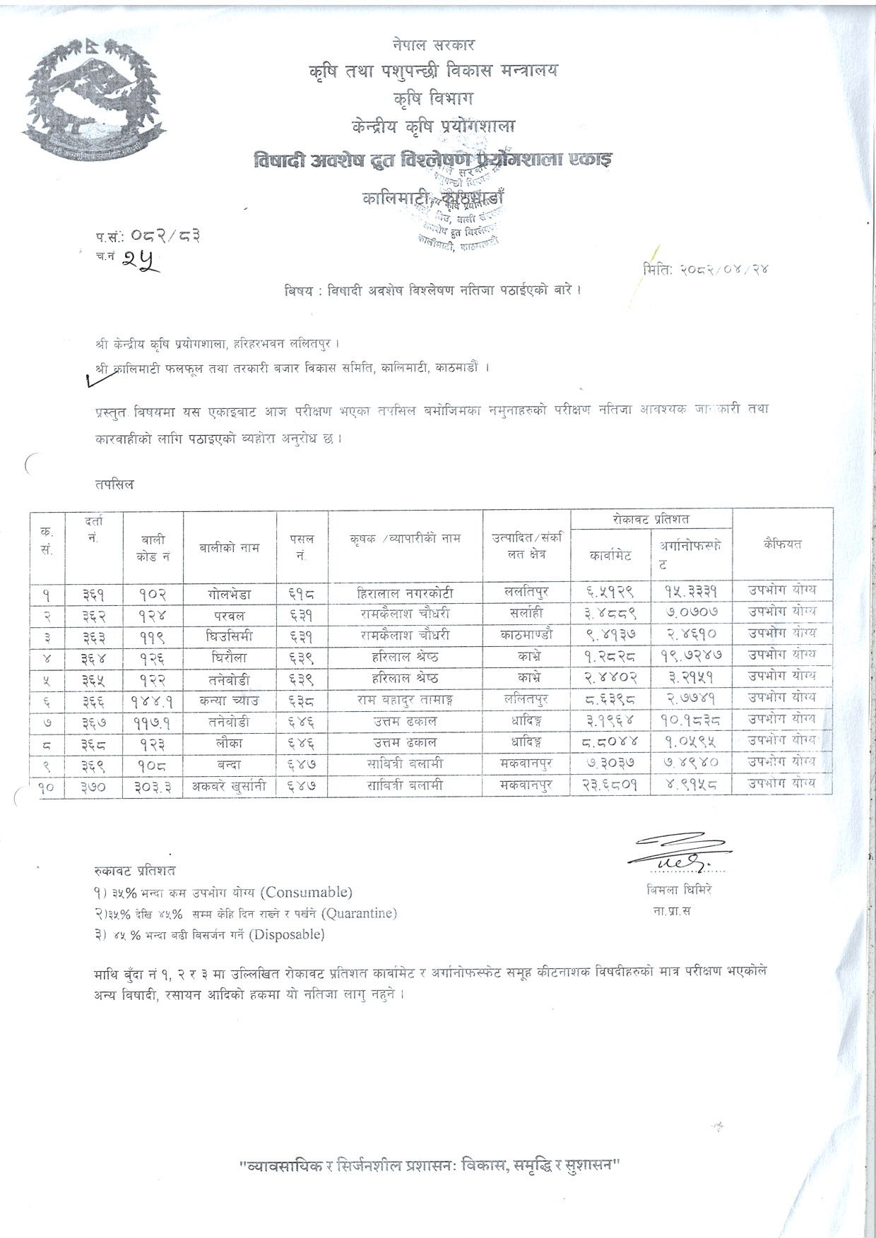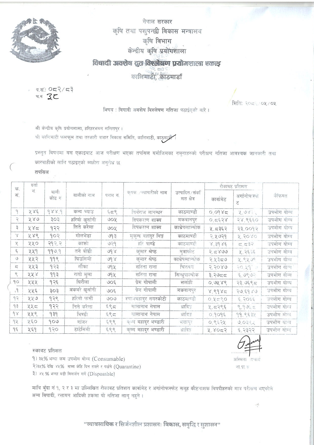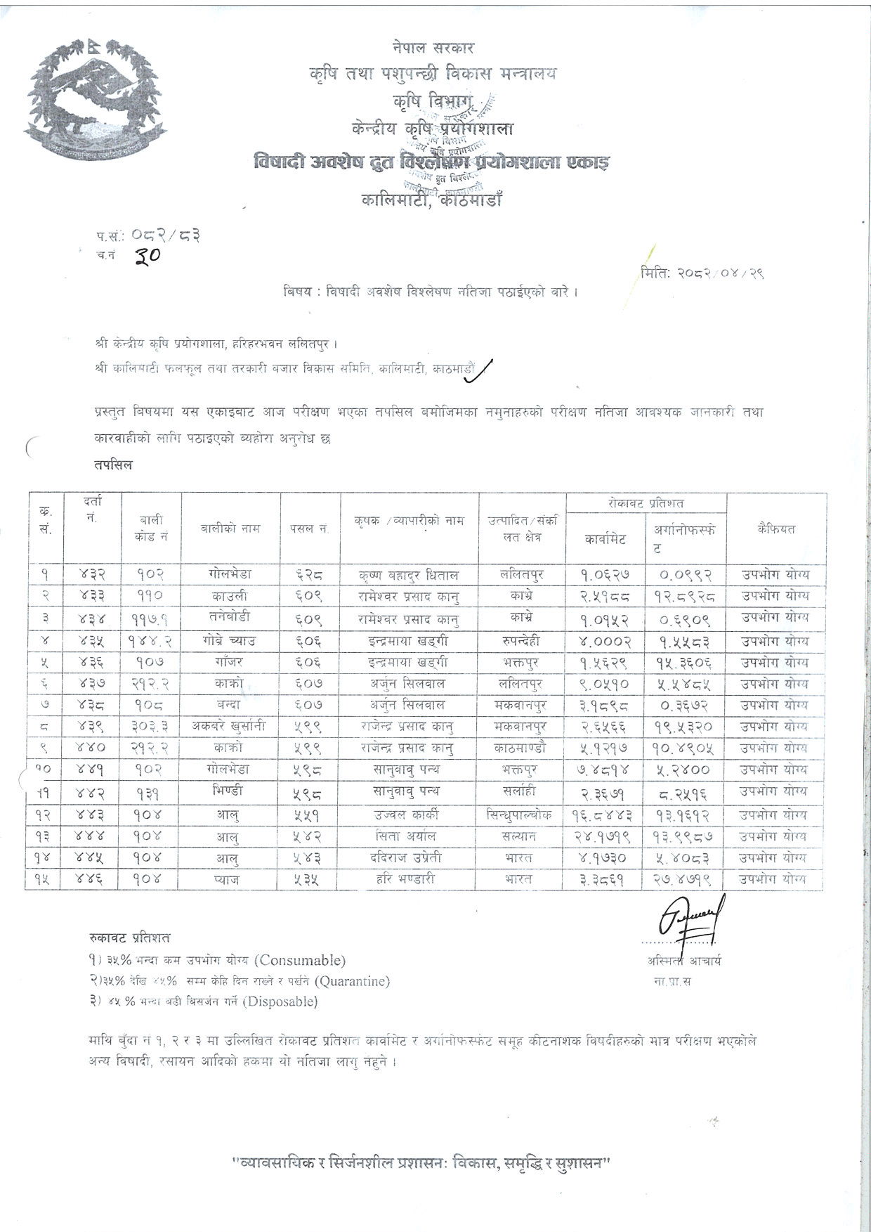 ७० | विषादी अवशेष द्रुत विश्लेषण नतिजा २०८२/४/७ | सूचना हेर्नुहोस् | वि.सं. साउन ०७, २०८२ | डाउनलोड गर्नुहोस् |