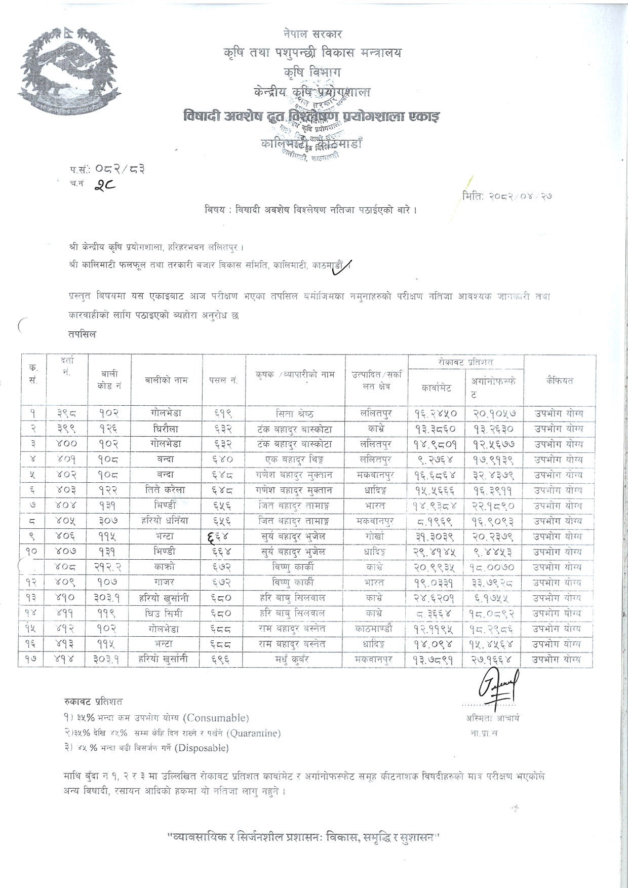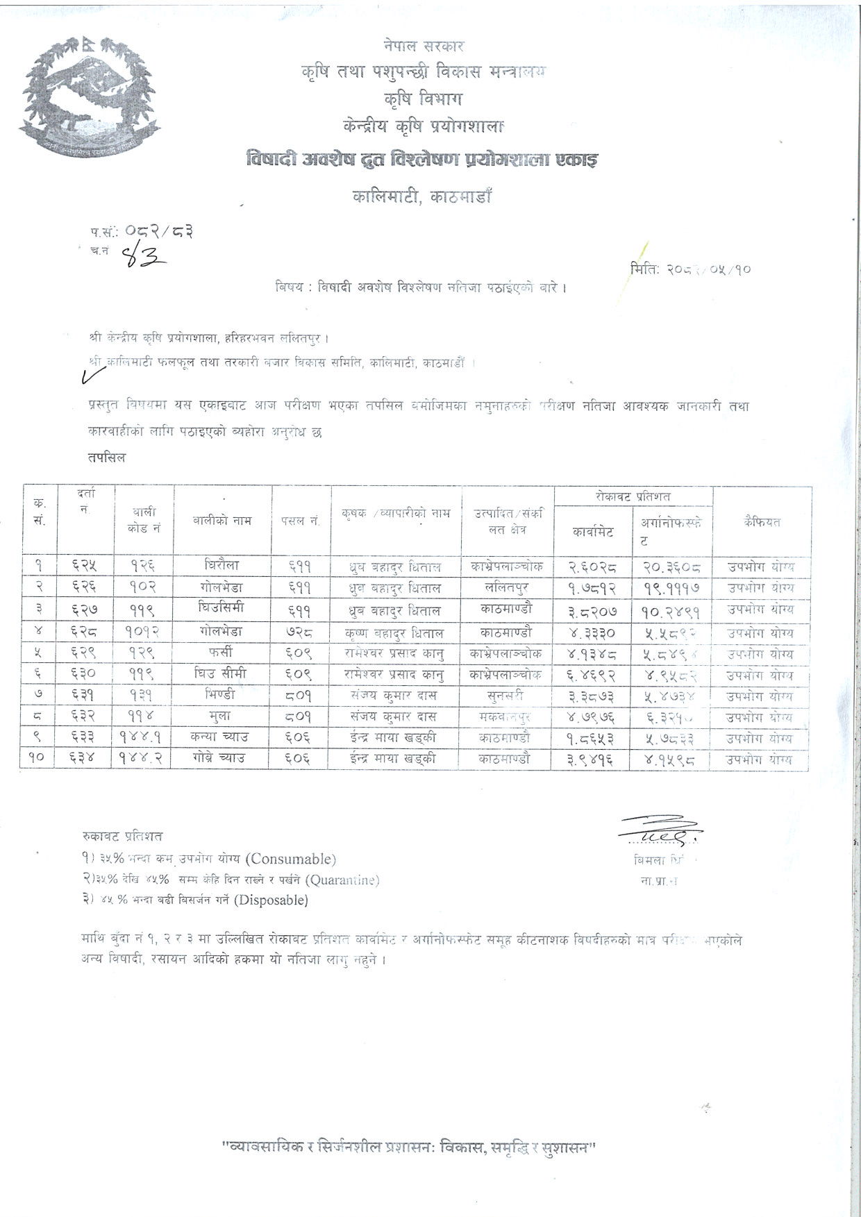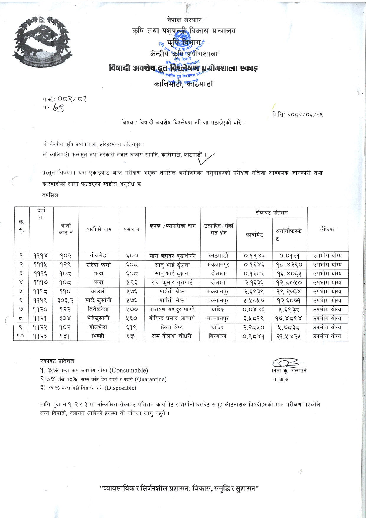 ७० | विषादी अवशेष द्रुत विश्लेषण नतिजा २०८२/४/७ | सूचना हेर्नुहोस् | वि.सं. साउन ०७, २०८२ | डाउनलोड गर्नुहोस् |
