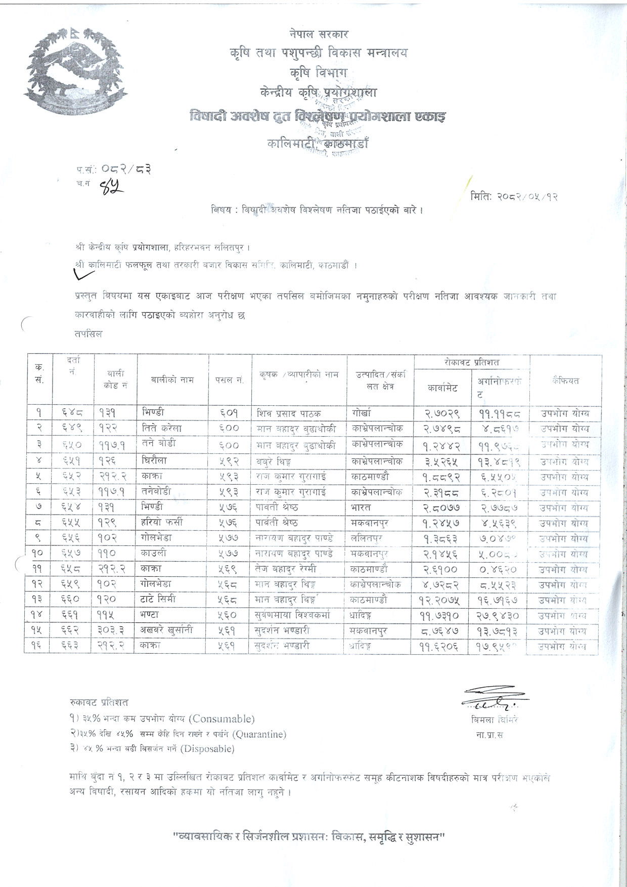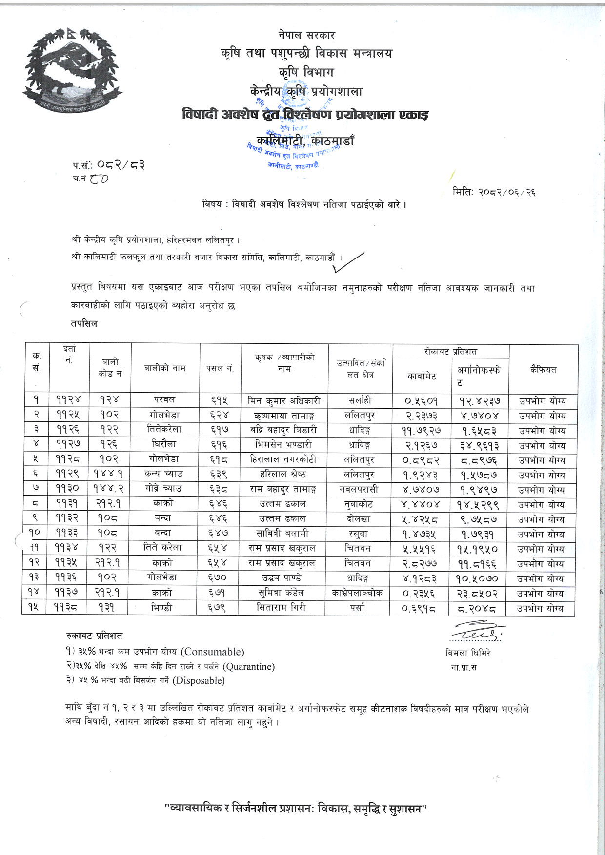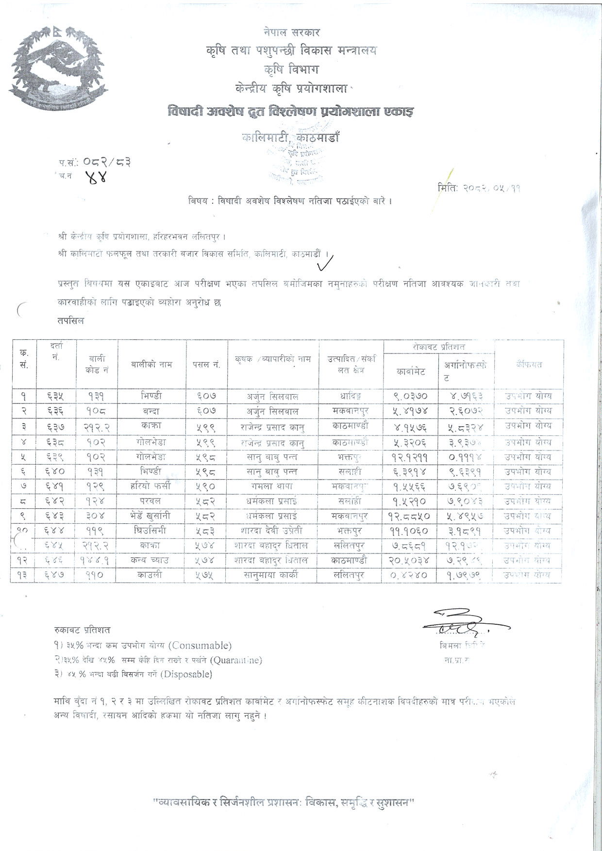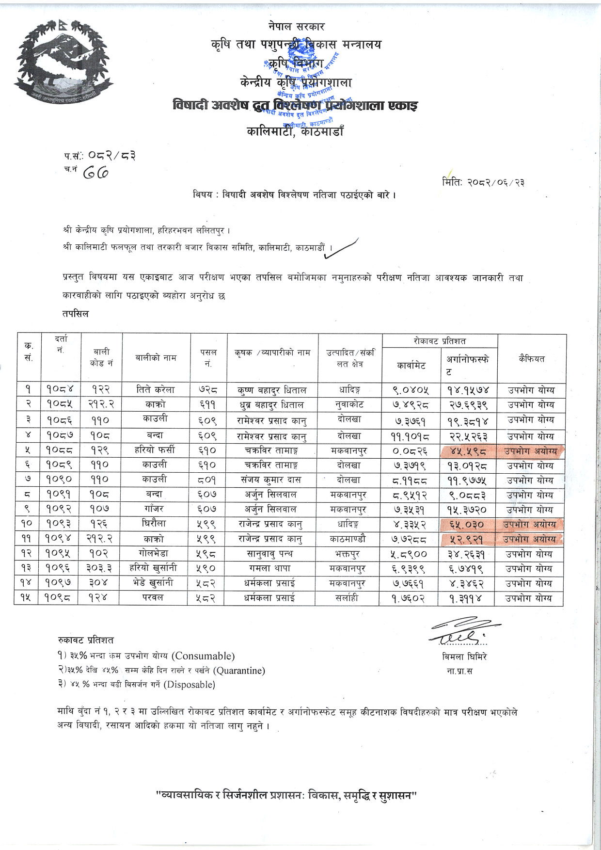 ३२ | विषादी अवशेष द्रुत विश्लेषण नतिजा २०८२/५/१४ | सूचना हेर्नुहोस् | वि.सं. भदौ १४, २०८२ | डाउनलोड गर्नुहोस् |