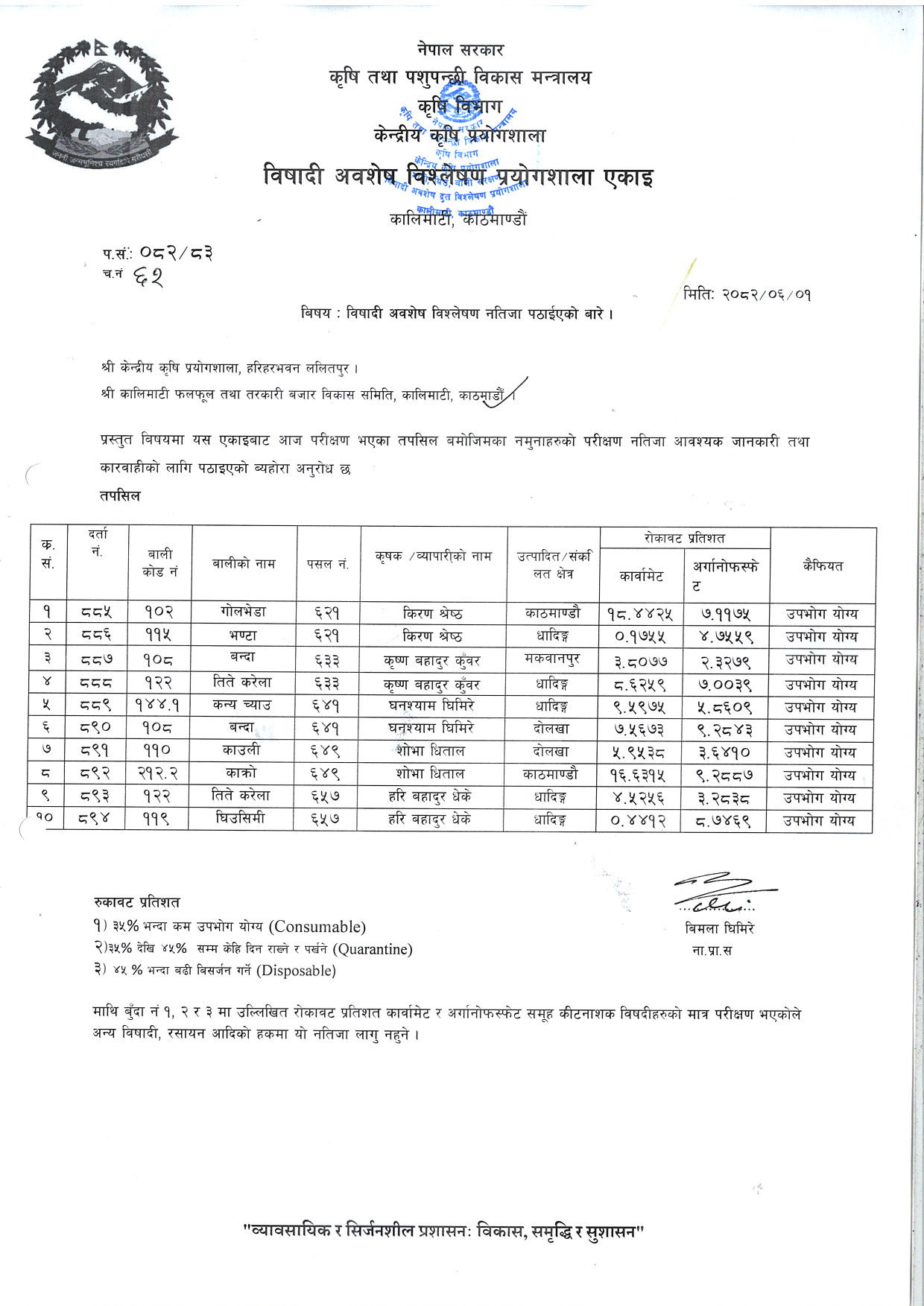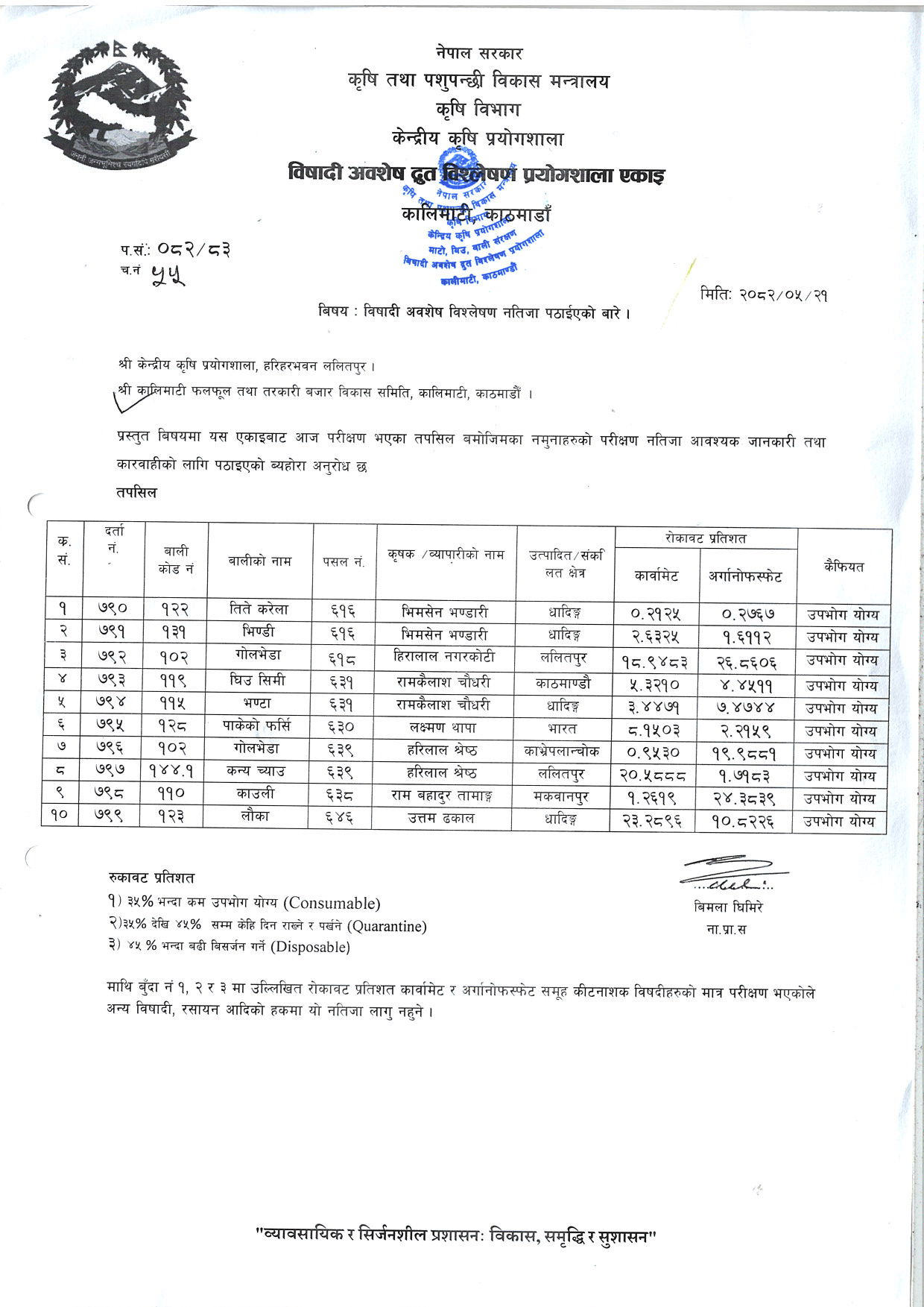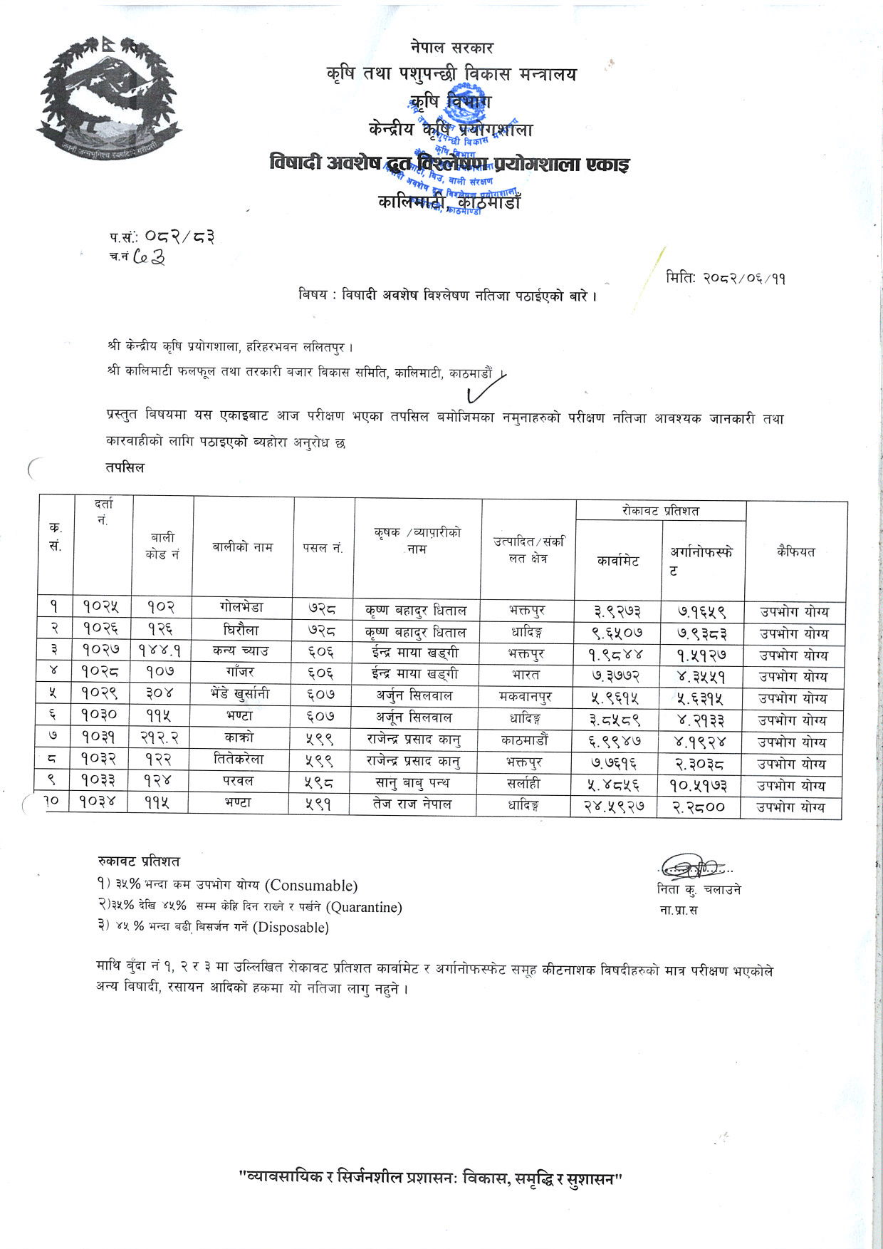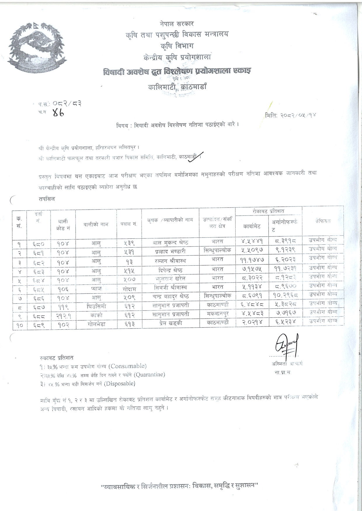 ३२ | विषादी अवशेष द्रुत विश्लेषण नतिजा २०८२/५/१४ | सूचना हेर्नुहोस् | वि.सं. भदौ १४, २०८२ | डाउनलोड गर्नुहोस् |