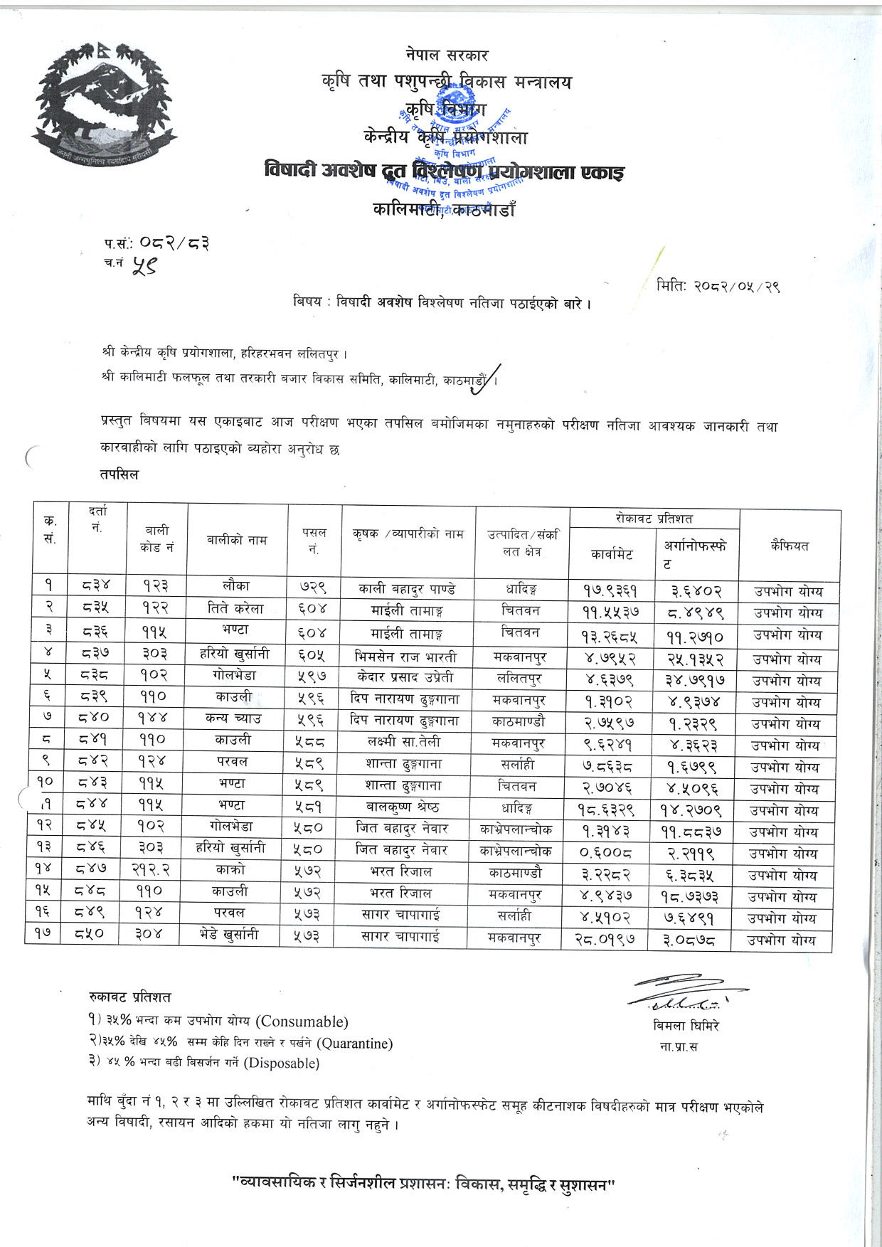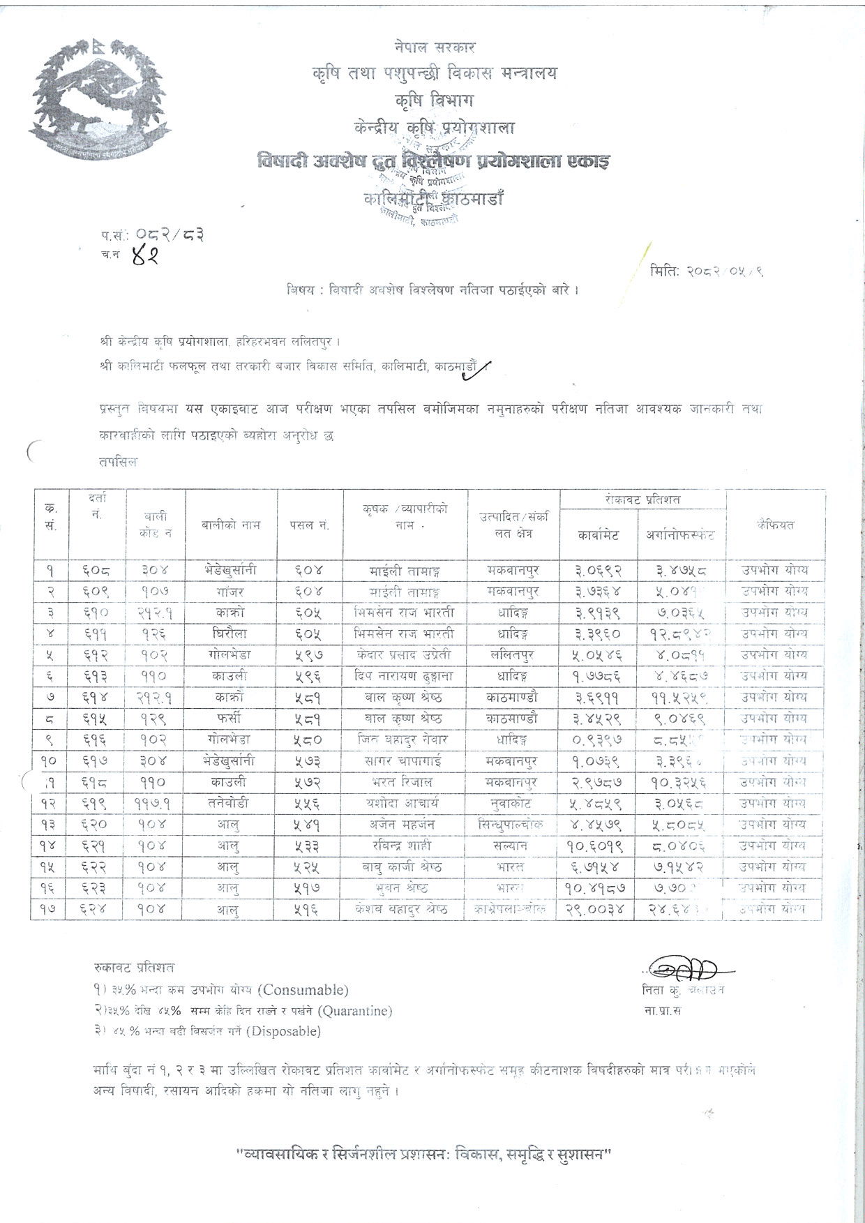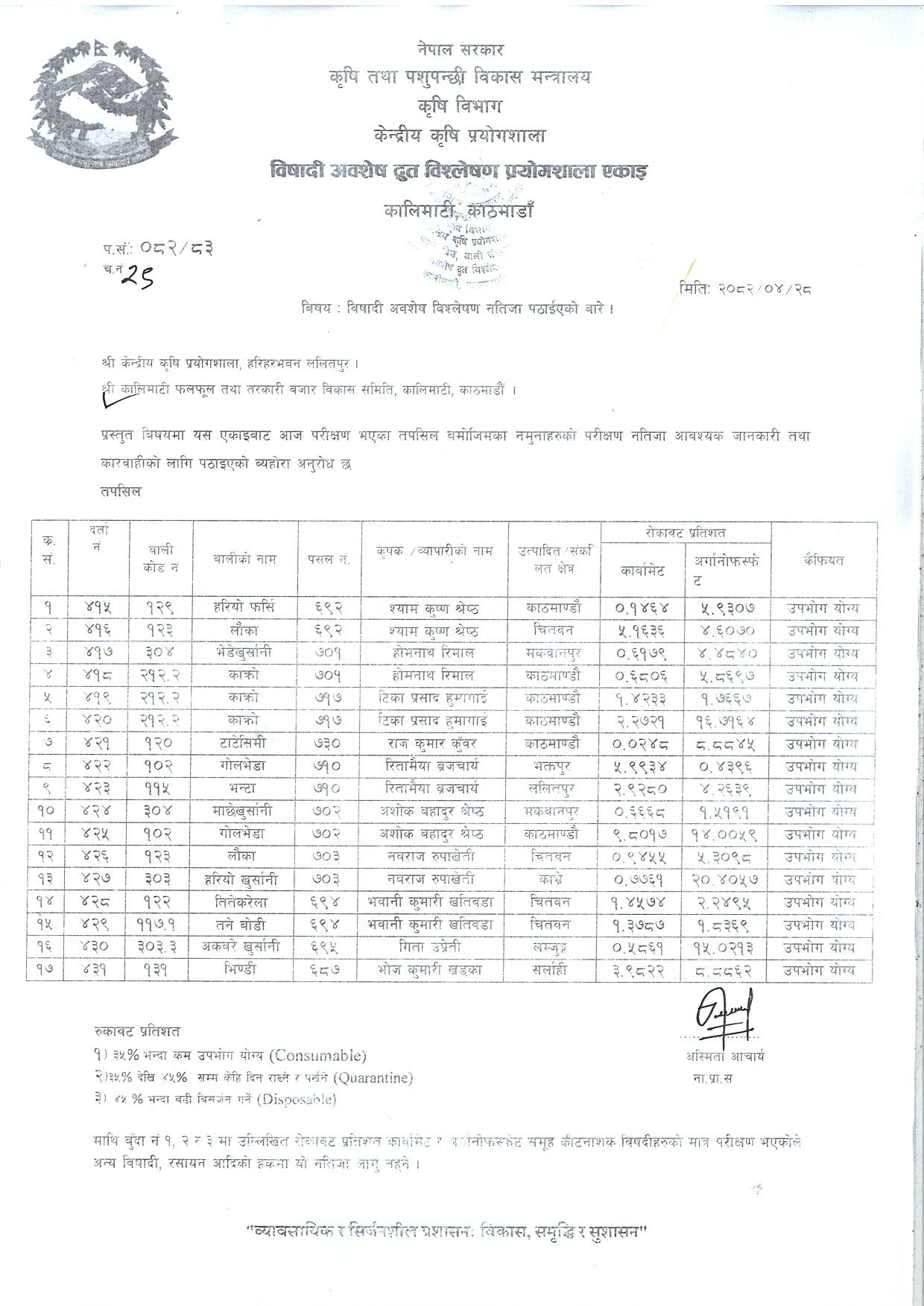 ४९ | विषादी अवशेष द्रुत विश्लेषण नतिजा २०८२/४/२८ | सूचना हेर्नुहोस् | वि.सं. साउन २८, २०८२ | डाउनलोड गर्नुहोस् |