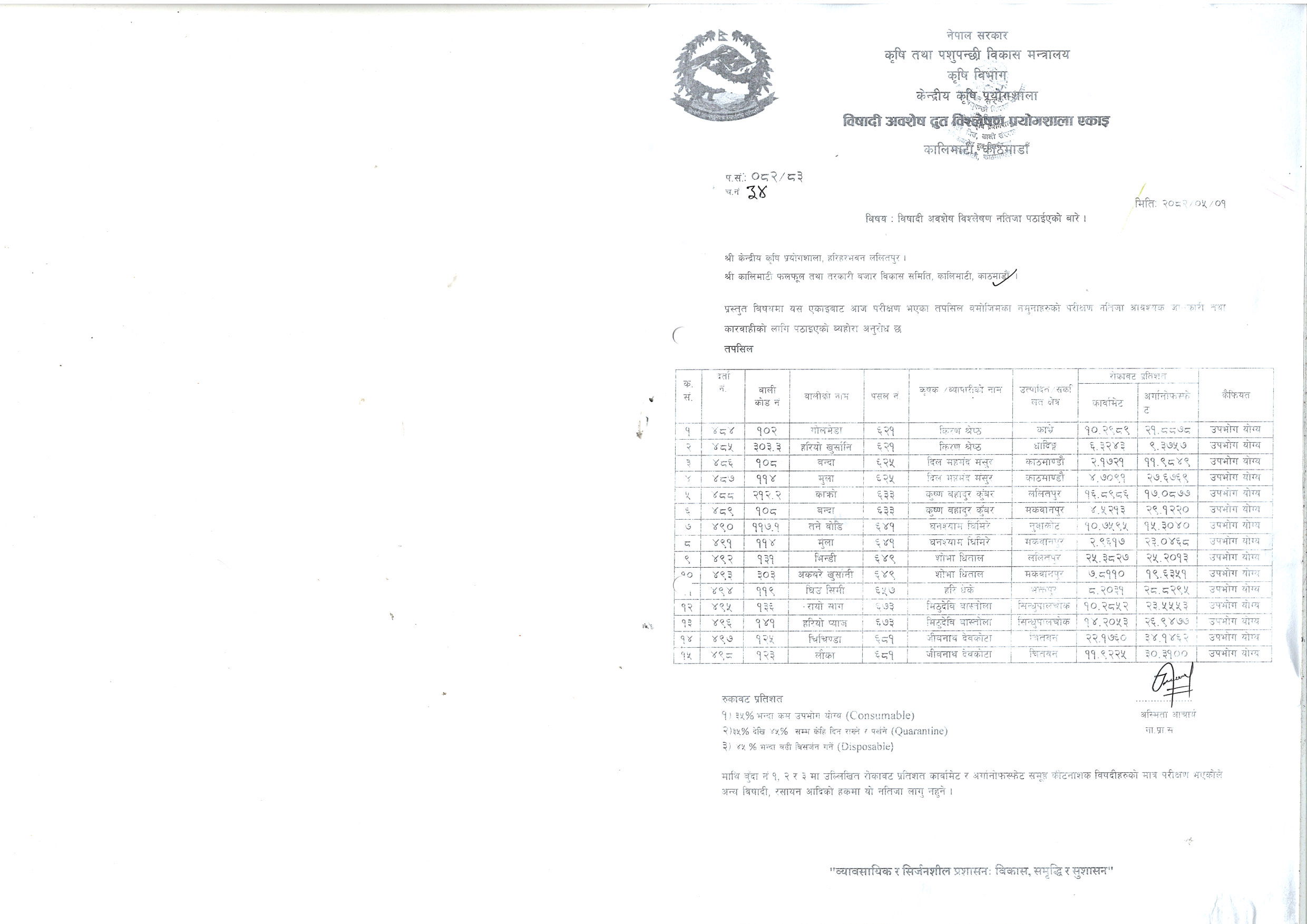 ७१ | विषादी अवशेष द्रुत विश्लेषण नतिजा २०८२/४/६ | सूचना हेर्नुहोस् | वि.सं. साउन ०६, २०८२ | डाउनलोड गर्नुहोस् |