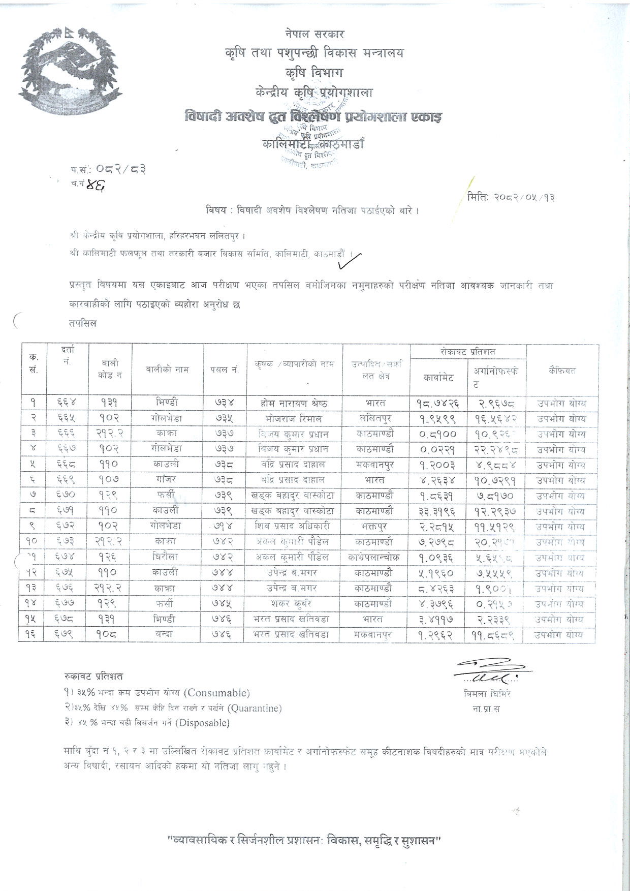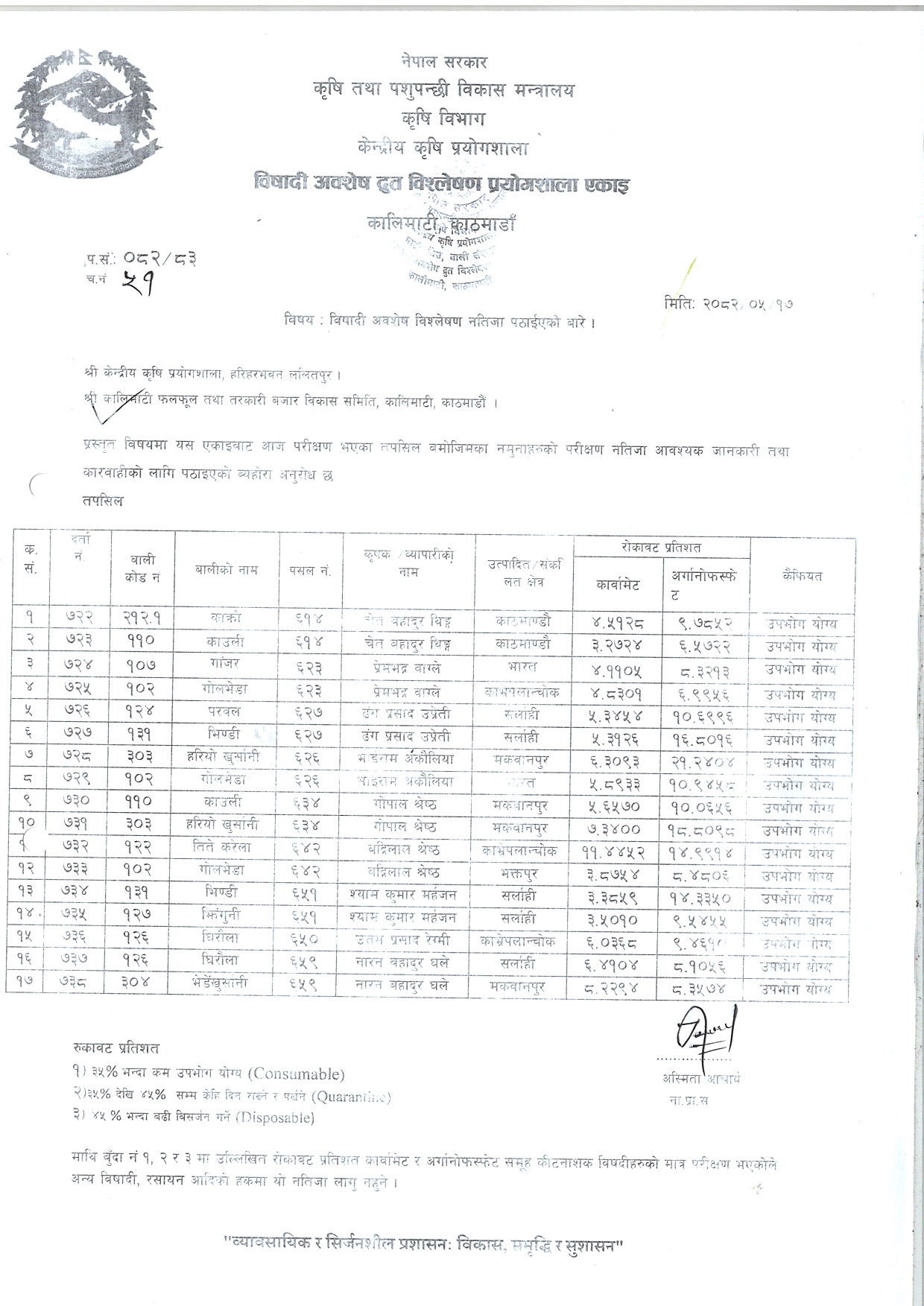 ३३ | विषादी अवशेष द्रुत विश्लेषण नतिजा २०८२/५/१३ | सूचना हेर्नुहोस् | वि.सं. भदौ १३, २०८२ | डाउनलोड गर्नुहोस् |